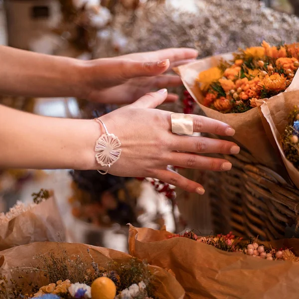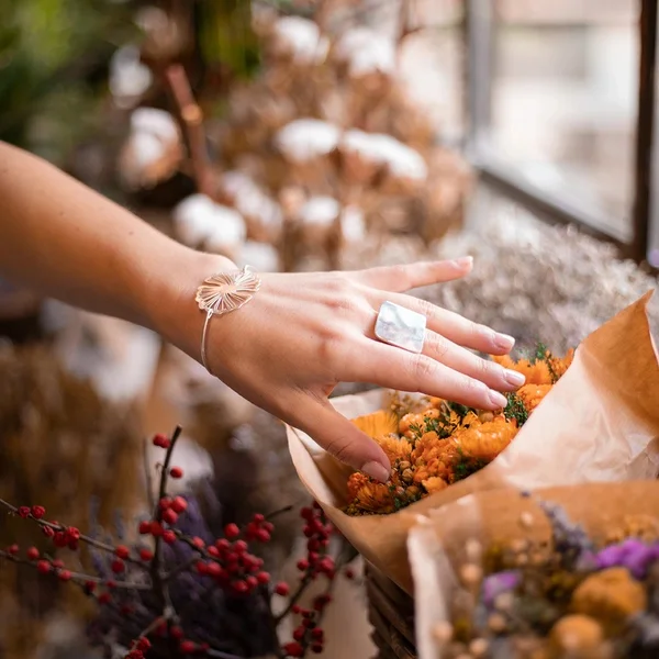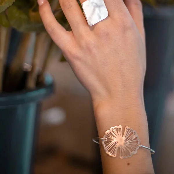 RAS. hõlmikpuu motiiviga kaunistatud hõbedane käevõru Ginkgo Biloba.