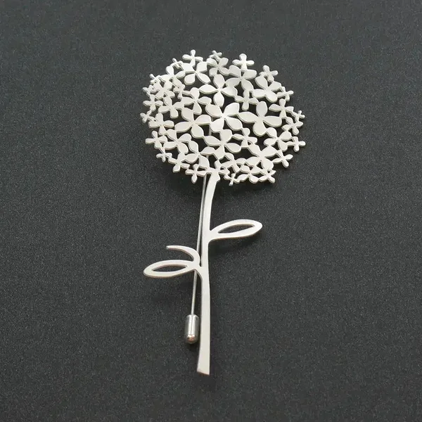 RAS. hortensia motiiviga hõbedane rinnanõel.