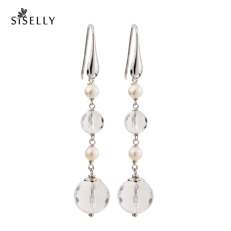 Mäekristall 8 mm ja 12 mm, Pärl 5 mm, kinnitus 925 hõbe